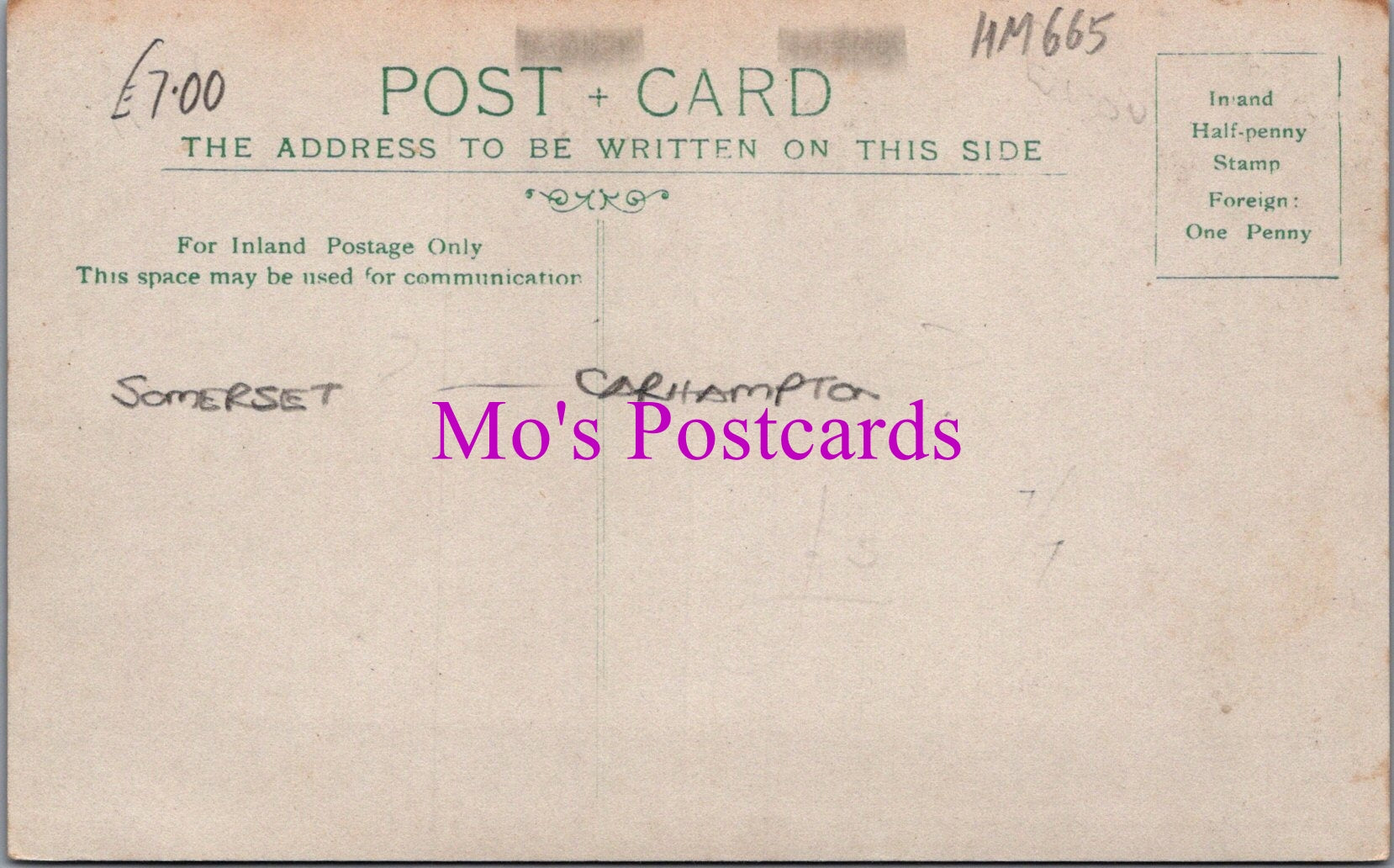 Mo's Ref:  Somerset Postcard - Detached House, Carhampton? HM665