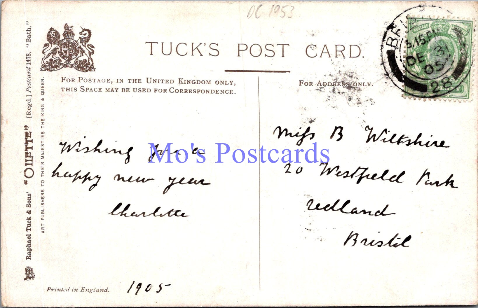 The 'Mo's Postcards' watermark does not appear on the actual postcard'.