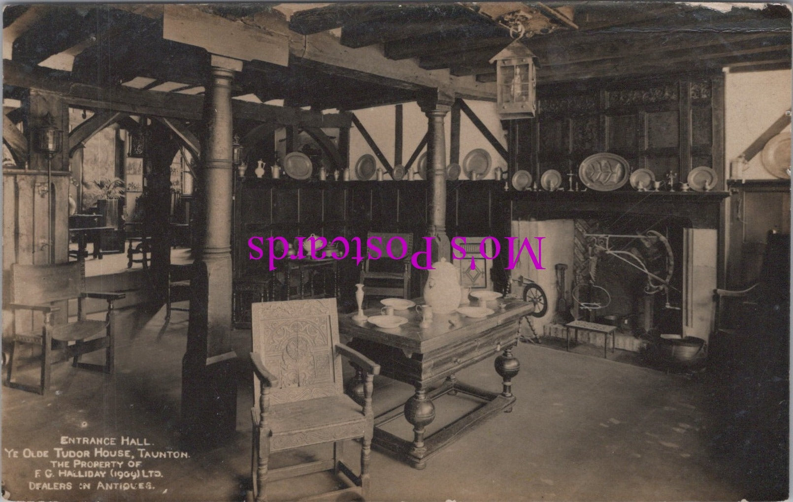 This is a Somerset Postcard - Taunton, Ye Olde Tudor House Entrance Hall HM664