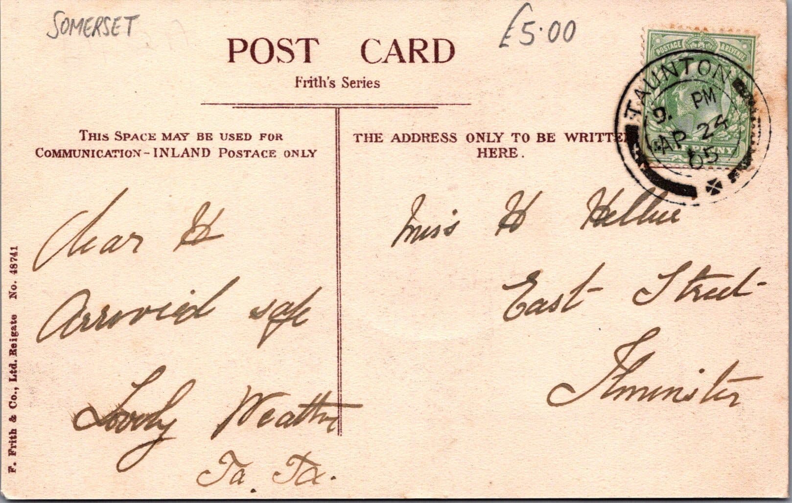 Standard size postcard. Published by Frith. Posted in 1905. Large curved crease to the centre of the card.