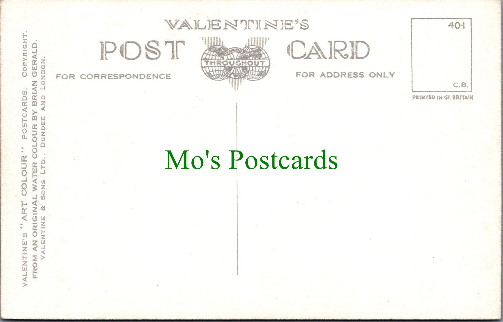 All of our postcards are posted to you inside a plastic sleeve and a board backed envelope which will be marked 'Please do not bend'. The 'Mo's Postcards' watermark does not appear on the actual postcard'.