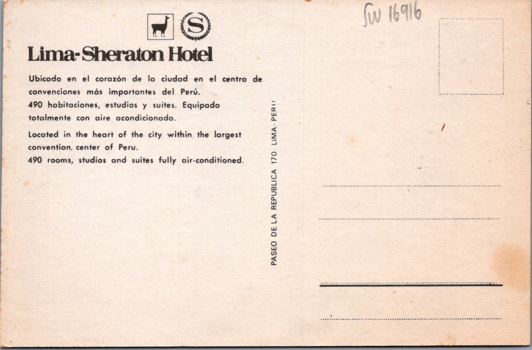 Mo's Ref:  Peru Postcard - Lima-Sheraton Hotel SW16916