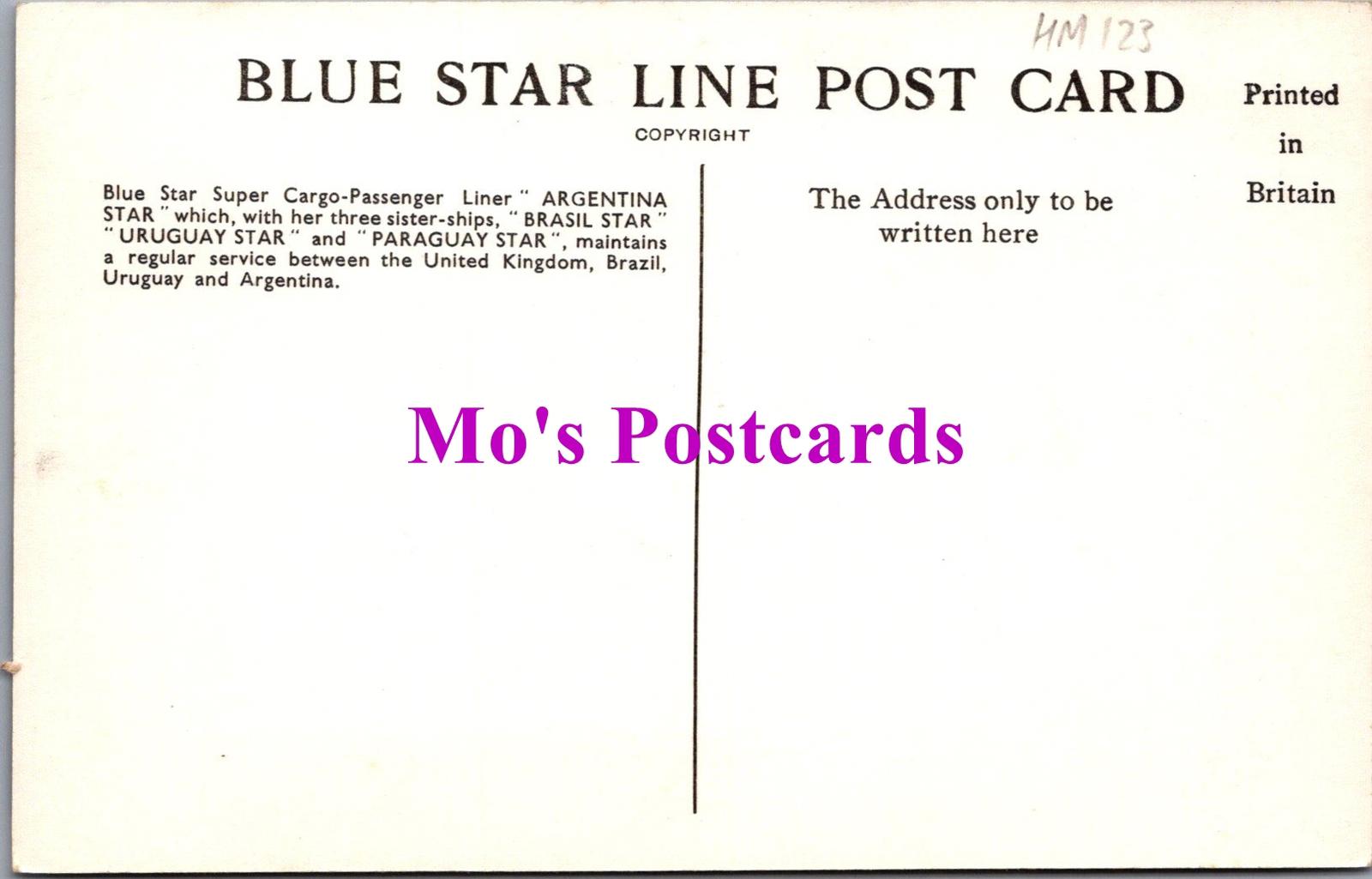 Mo's Ref: Shipping Postcard - Blue Star Super Cargo Passenger Liner Argentina Star  HM123