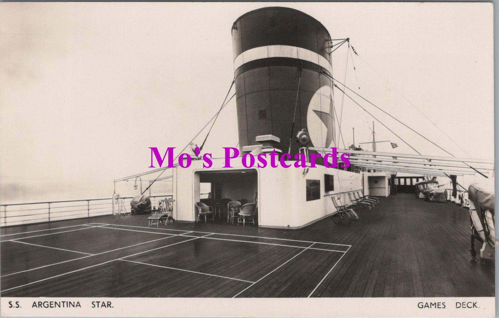 This is a Shipping Postcard - Blue Star Super Cargo Passenger Liner Argentina Star. The Games Deck  HM123