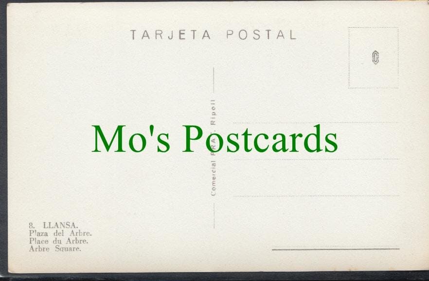 Mo's Postcards offers for sale a postcard showing Plaza Del Arbre, Llansa, Spain.