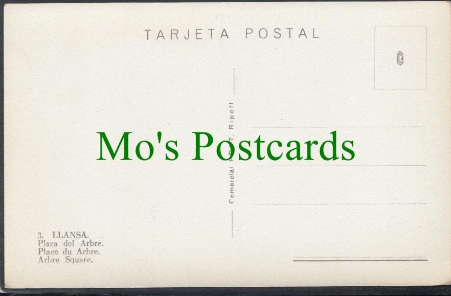 Mo's Postcards offers for sale a postcard showing Plaza Del Arbre, Llansa, Spain.