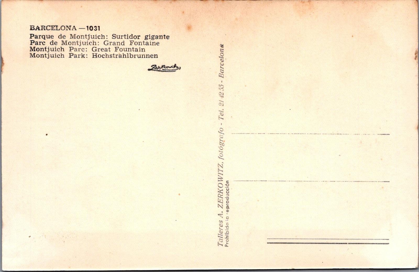This is a Spain Postcard - Barcelona, Montjuich Park, Great Fountain RRR1500
