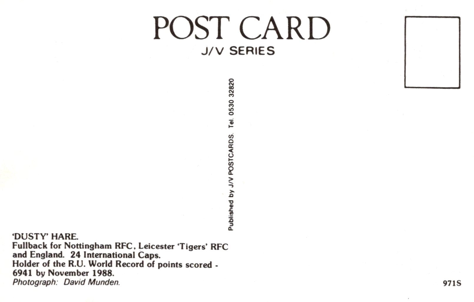 Mo's Ref:  Sport Postcard - Rugby Player, W.H.Hare, 'Dusty' Hare  SW19905
