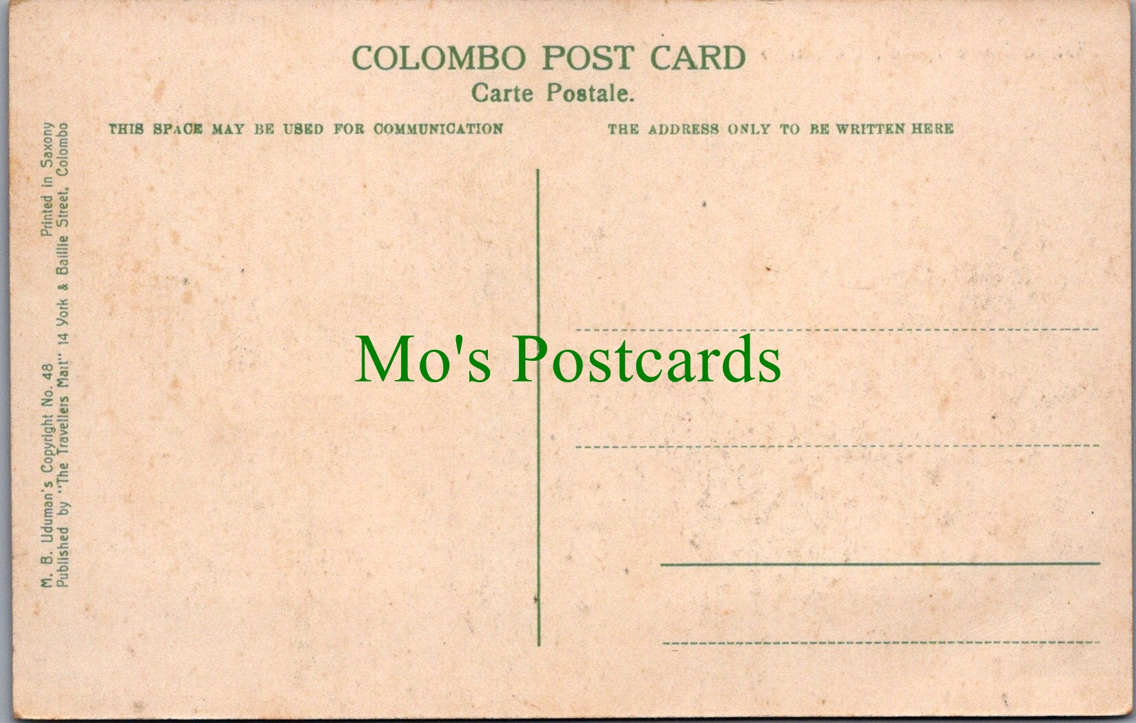 The 'Mo's Postcards' watermark does not appear on the actual postcard'.