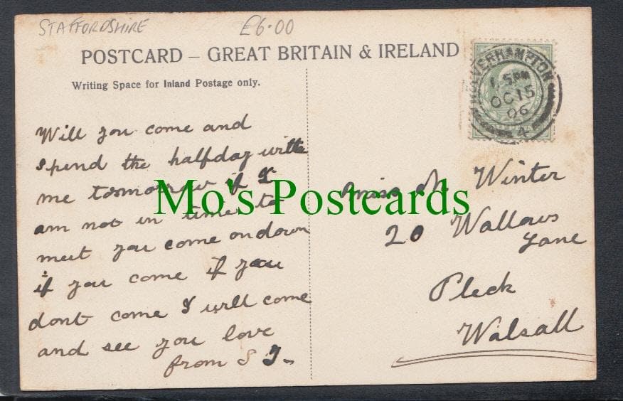 Standard size postcard. Posted in 1906. Slight wear to the top right hand corner.