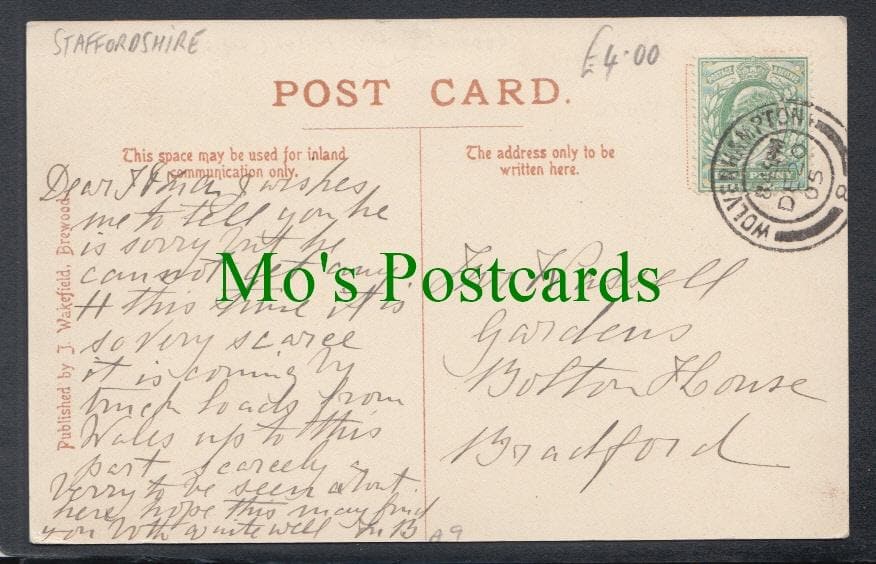 Standard size postcard. Published by J.Wakefield. Posted in 1905.