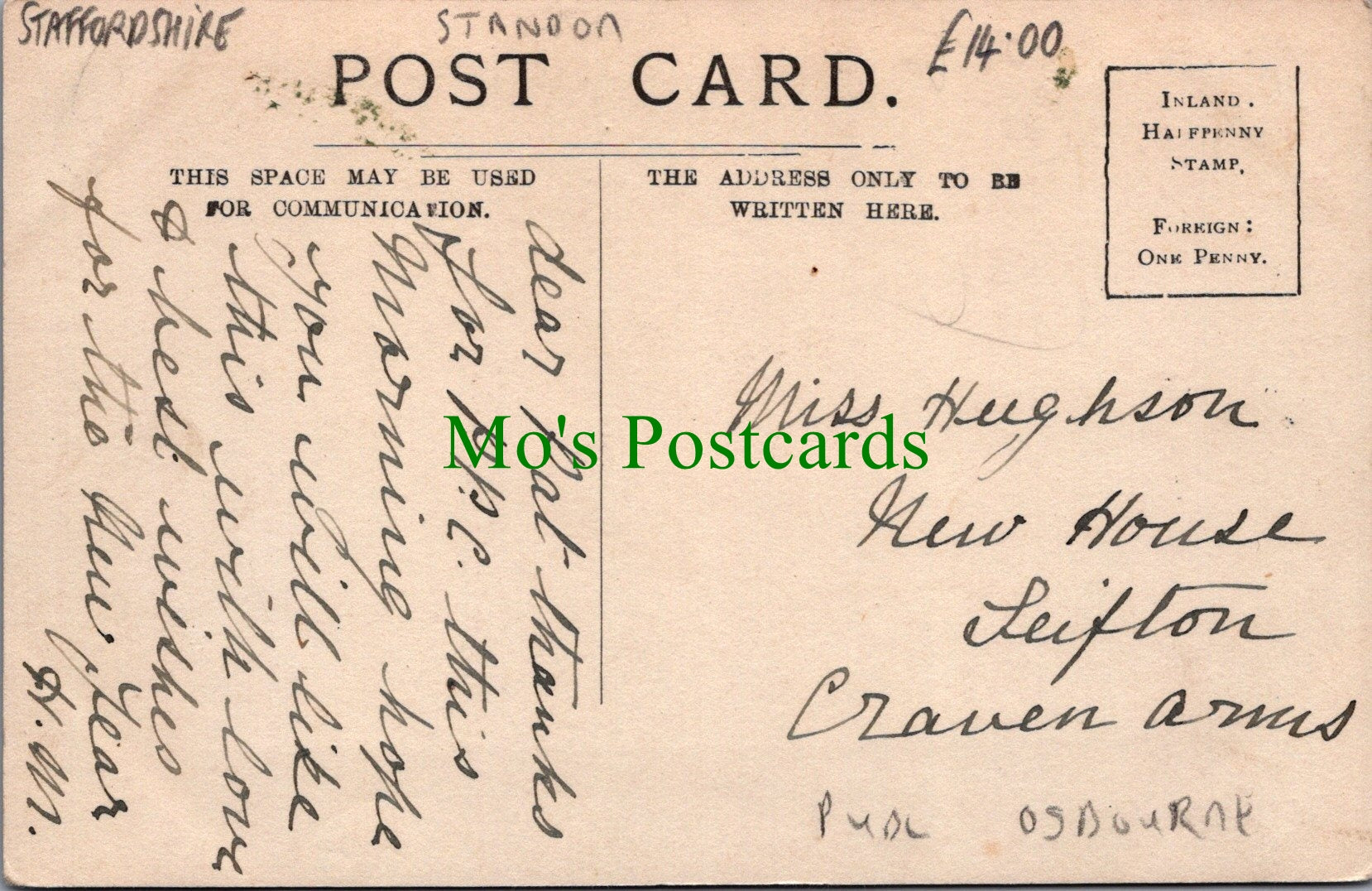 Ivy House, Standon, Staffordshire. This is a fantastic standard sized postcard which would be a great addition to your postcard collection. From an unknown publisher. Used, but not postally.