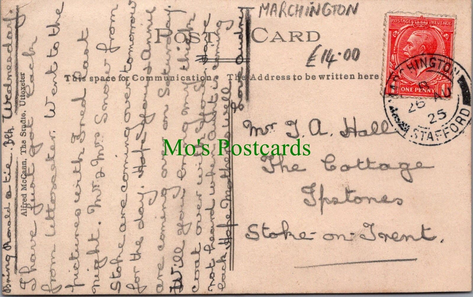 Mo's Postcards offers for sale a postcard of Marchington Village, Staffordshire.