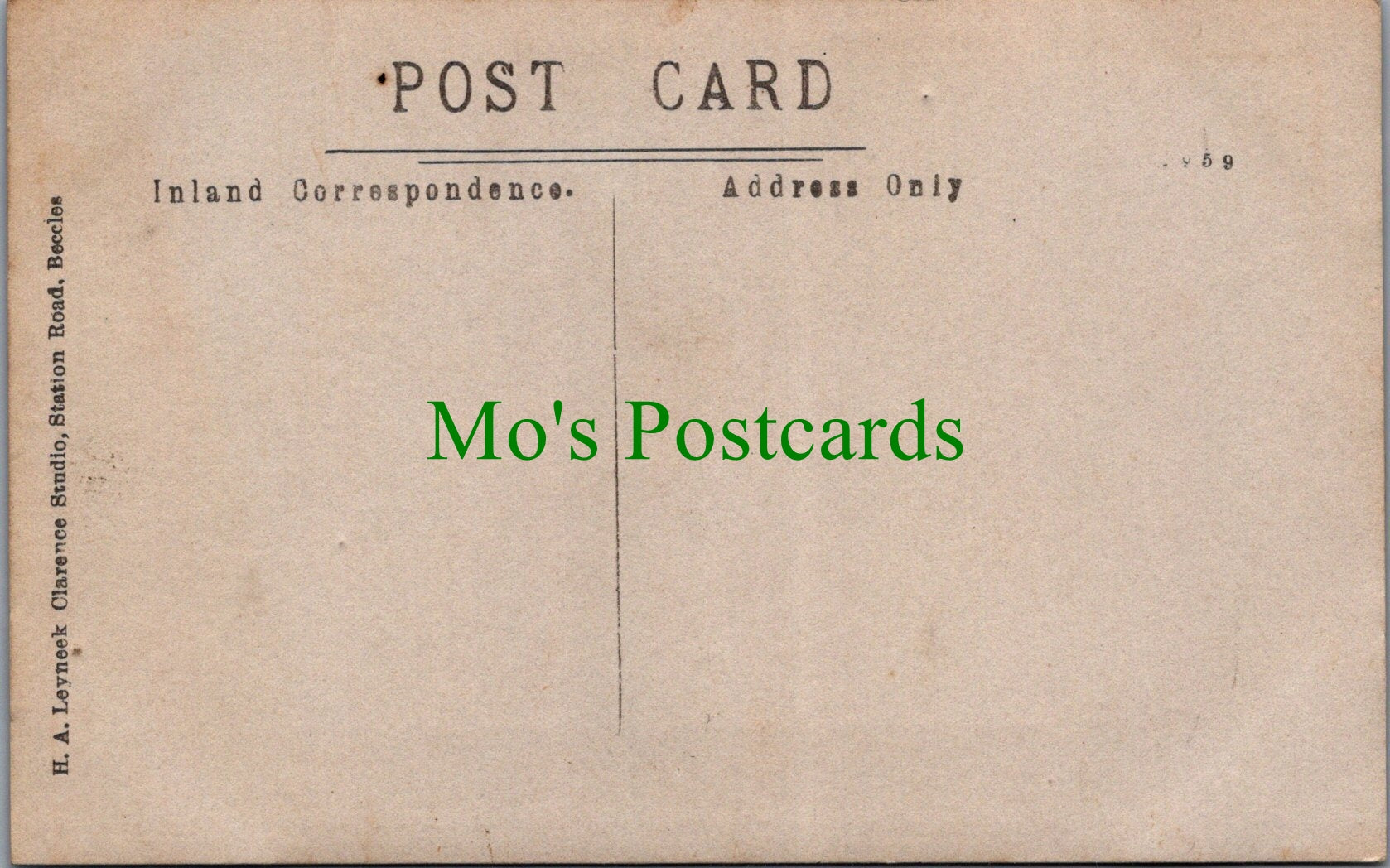 All of our postcards are posted to you inside a plastic sleeve and a board backed envelope which will be marked 'Please do not bend'. The 'Mo's Postcards' watermark does not appear on the actual postcard'.