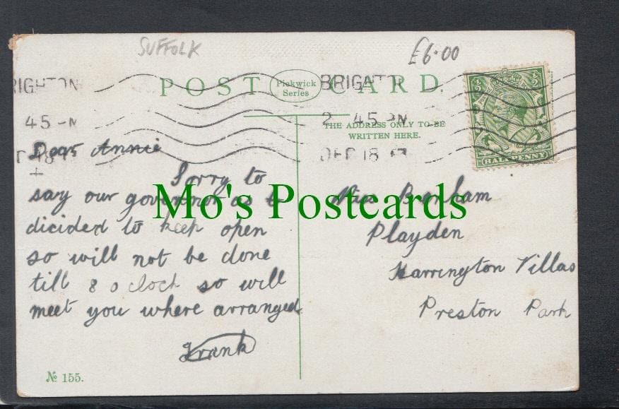 Standard size postcard. Pickwick Series. Couple of edge creases.