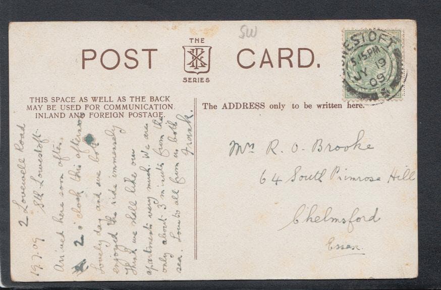 Suffolk Postcard - The Sparrow's Nest, Lowestoft, 1909
