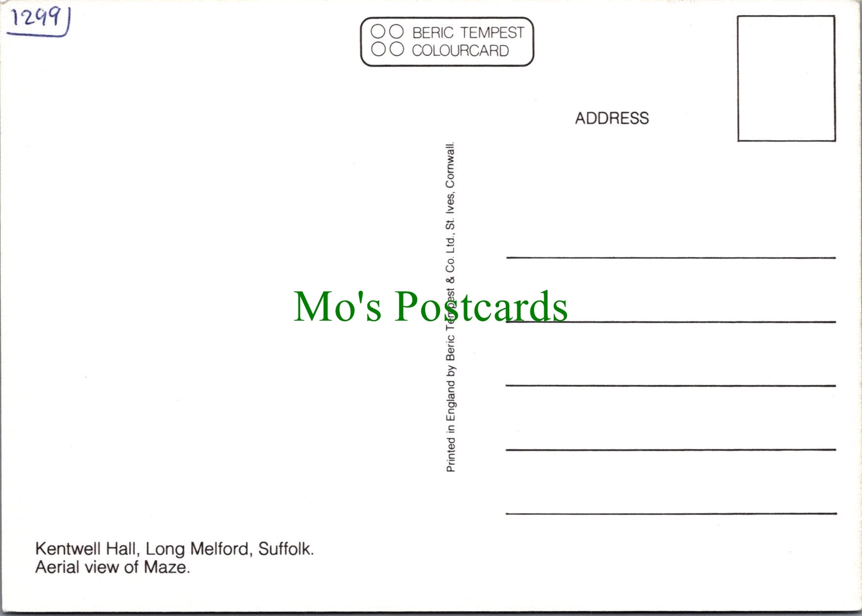 All of our beautiful postcards are posted to you inside a plastic sleeve and a board backed envelope which will be marked 'Please do not bend'. The 'Mo's Postcards' watermark does not appear on the actual postcard'.