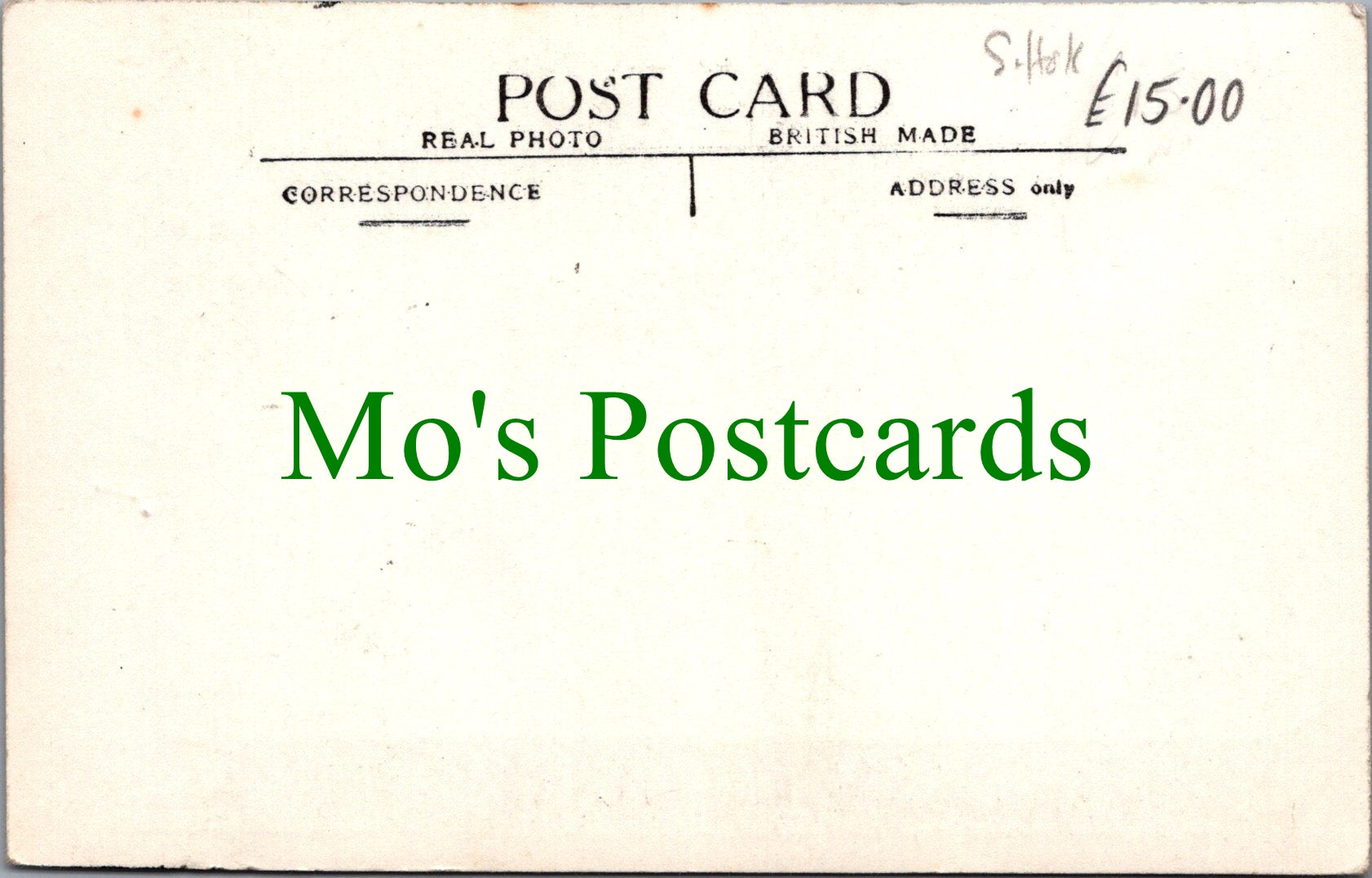All of our postcards are posted to you inside a plastic sleeve and a board backed envelope which will be marked 'Please do not bend'. The 'Mo's Postcards' watermark does not appear on the actual postcard'.