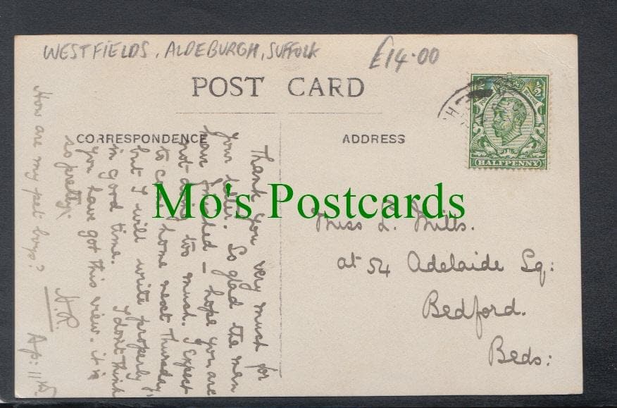Mo's Postcards offers for sale postcard of Westfields, Aldeburgh, Suffolk.