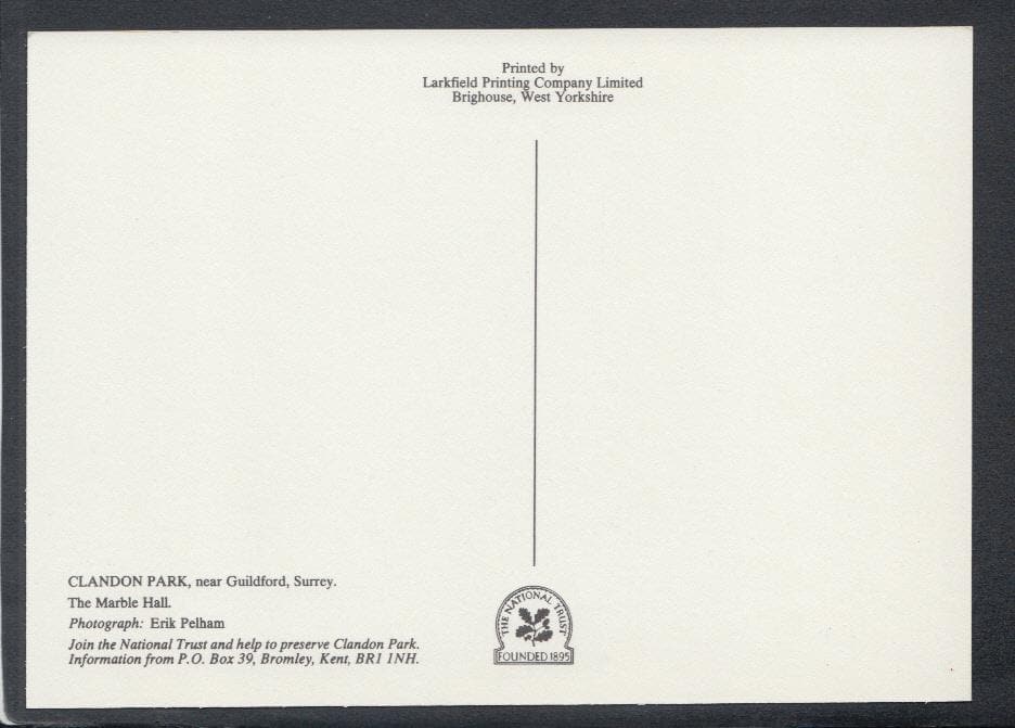 Mo's Postcards offers for sale a postcard of Clandon Park, Near Guildford, Surrey. The Marble Hall.