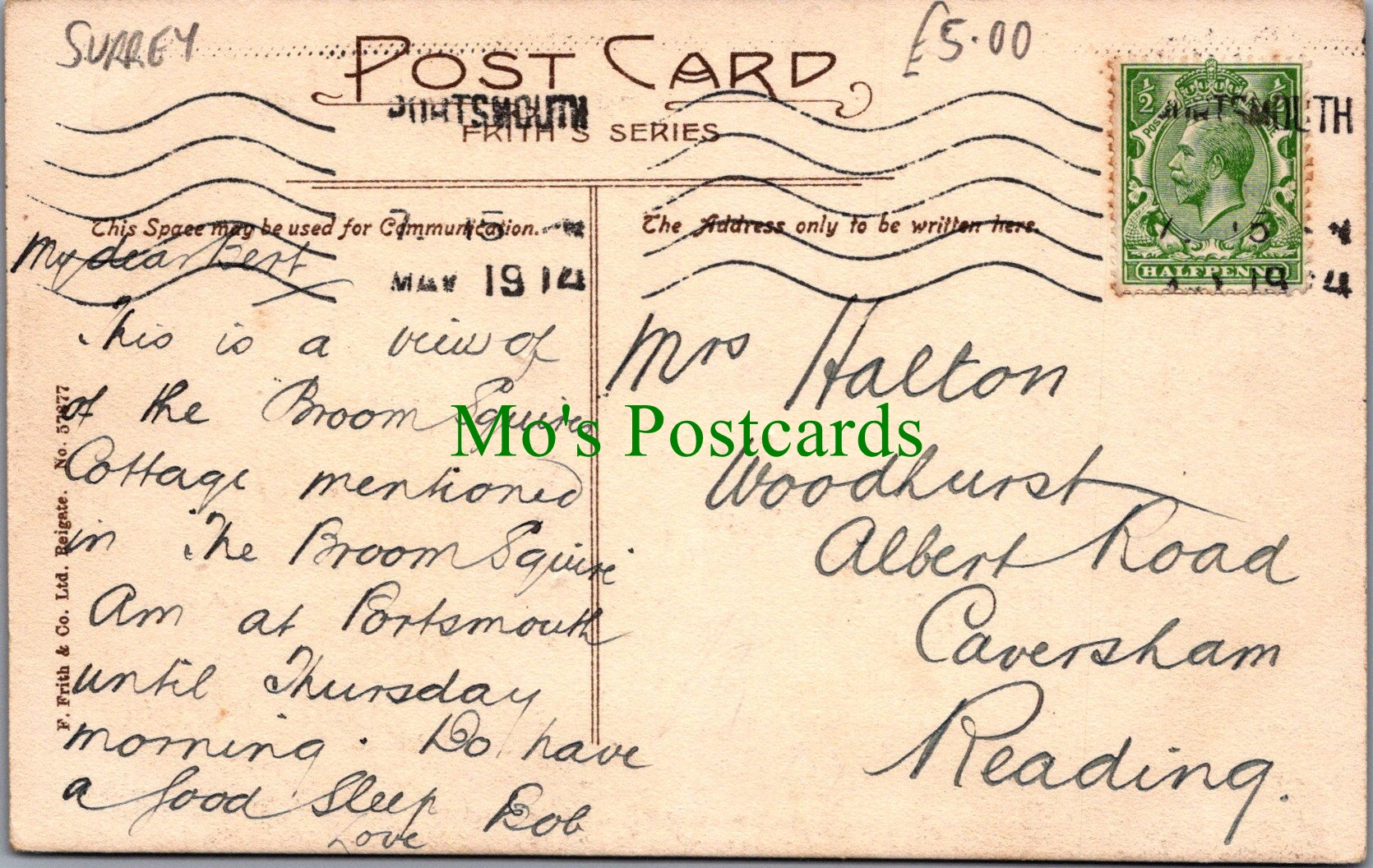 Broom Squire's Cottage, Devil's Punch Bowl, Hindhead, Surrey. This is a fantastic standard sized postcard which would be a great addition to your postcard collection.  Published by Frith. Posted in 1914.