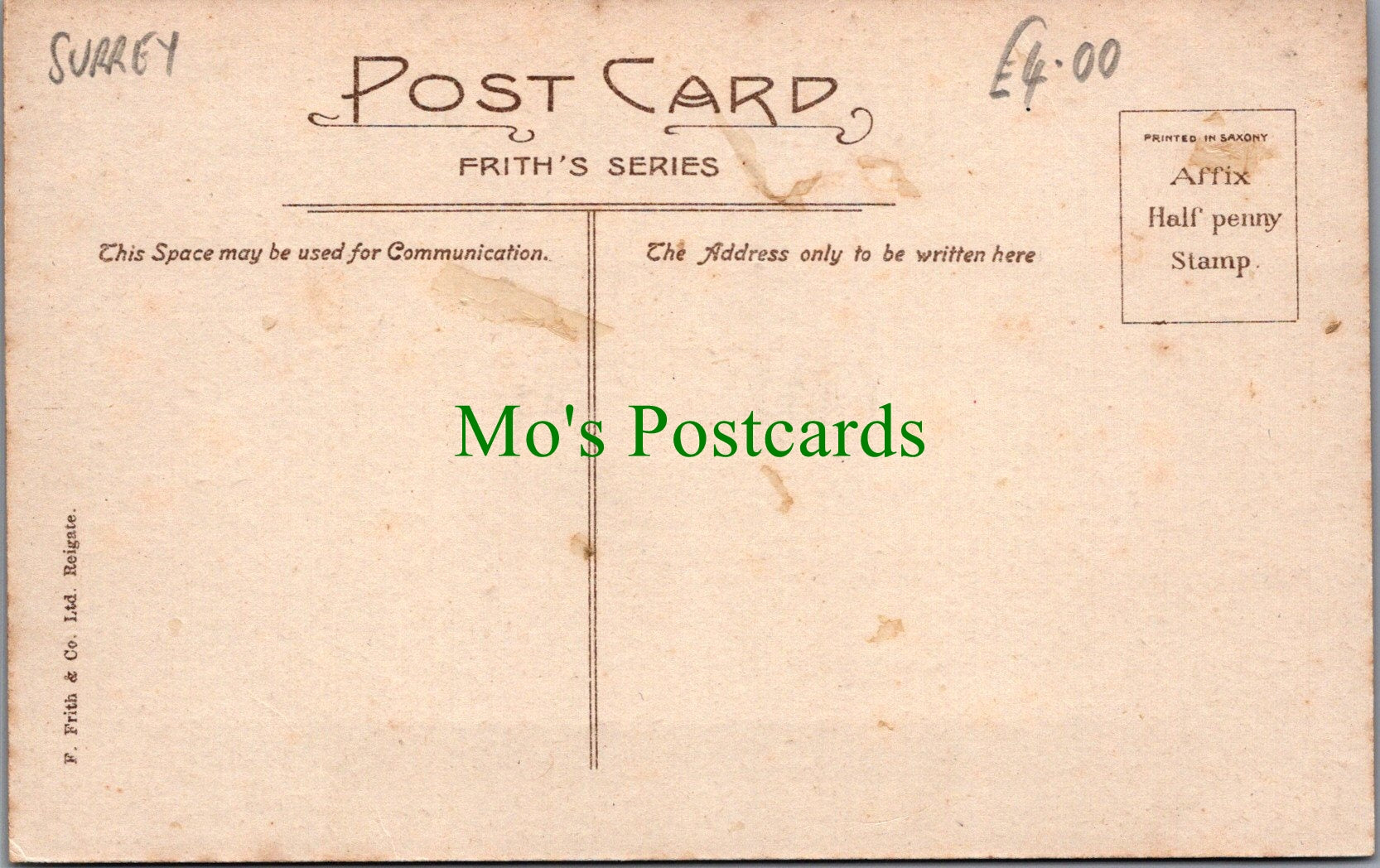 All of our beautiful postcards are posted to you inside a plastic sleeve and a board backed envelope which will be marked 'Please do not bend'. The 'Mo's Postcards' watermark does not appear on the actual postcard'.