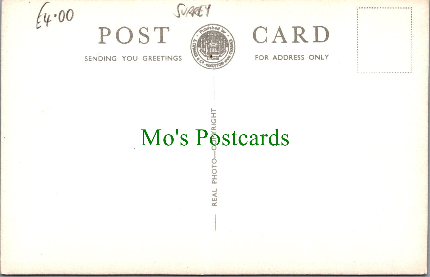 All of our beautiful postcards are posted to you inside a plastic sleeve and a board backed envelope which will be marked 'Please do not bend'. The 'Mo's Postcards' watermark does not appear on the actual postcard'.