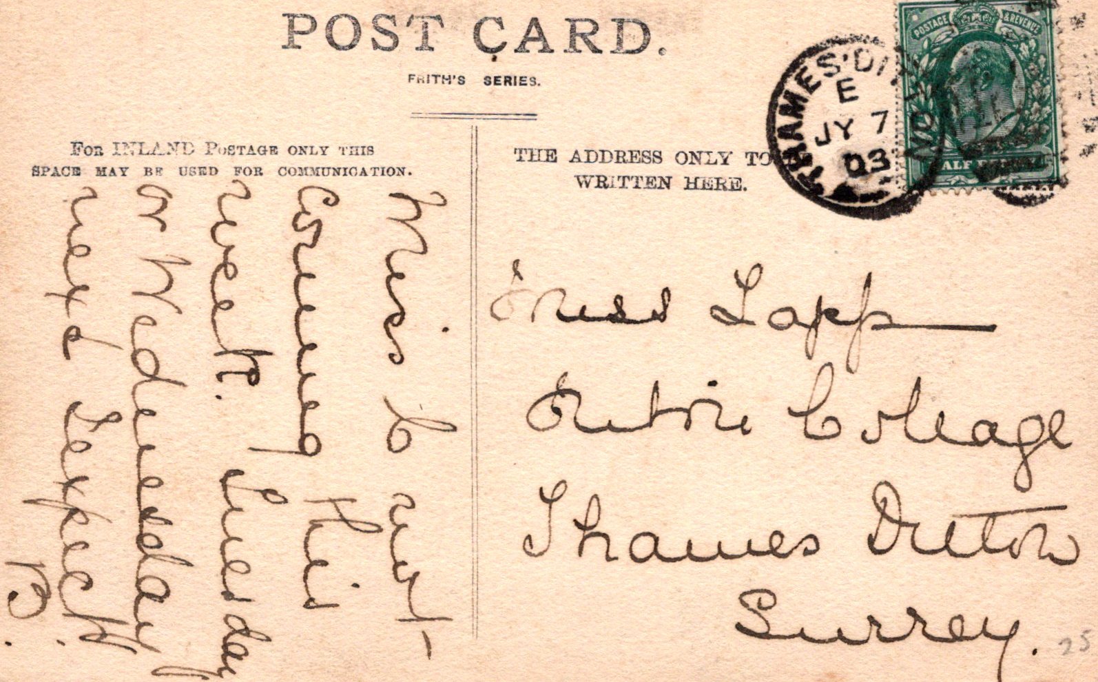 Postcard size: Standard. Posted in 1903