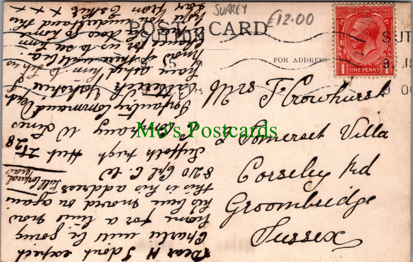 All of our postcards are posted to you inside a plastic sleeve and a board backed envelope which will be marked 'Please do not bend'. The 'Mo's Postcards' watermark does not appear on the actual postcard'.