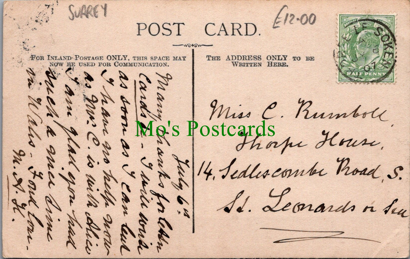 View From Thorpe Church Tower, Surrey. This is a fantastic standard sized postcard which would be a great addition to your postcard collection. Posted in 1907.