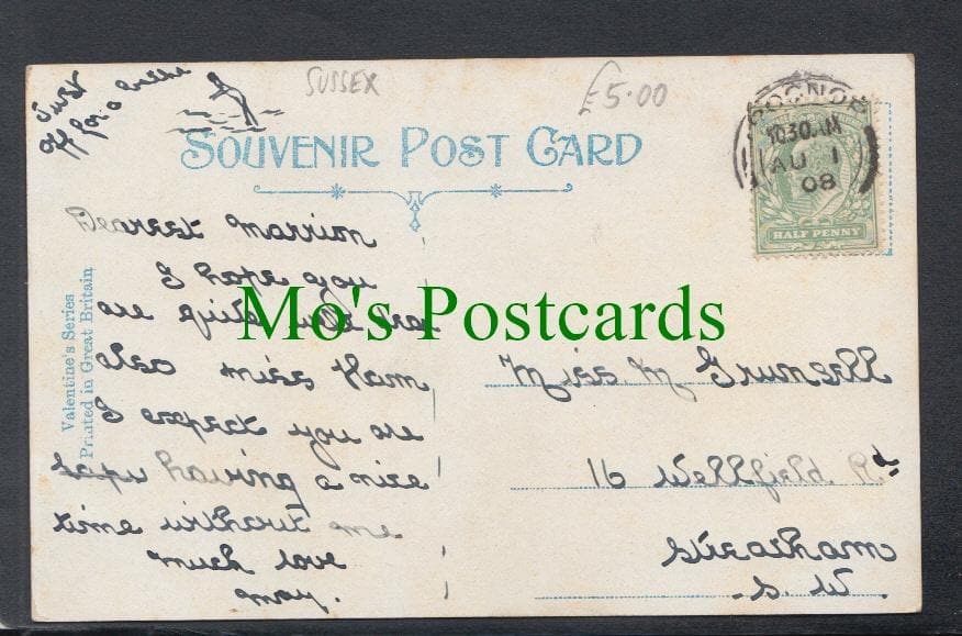 Standard size postcard. Published by Valentine. Posted in 1908.