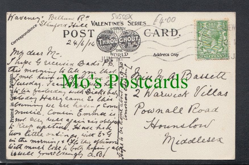 Standard size postcard. Published by Valentine's. Posted in 1914. Slight wear to the top left hand corner.