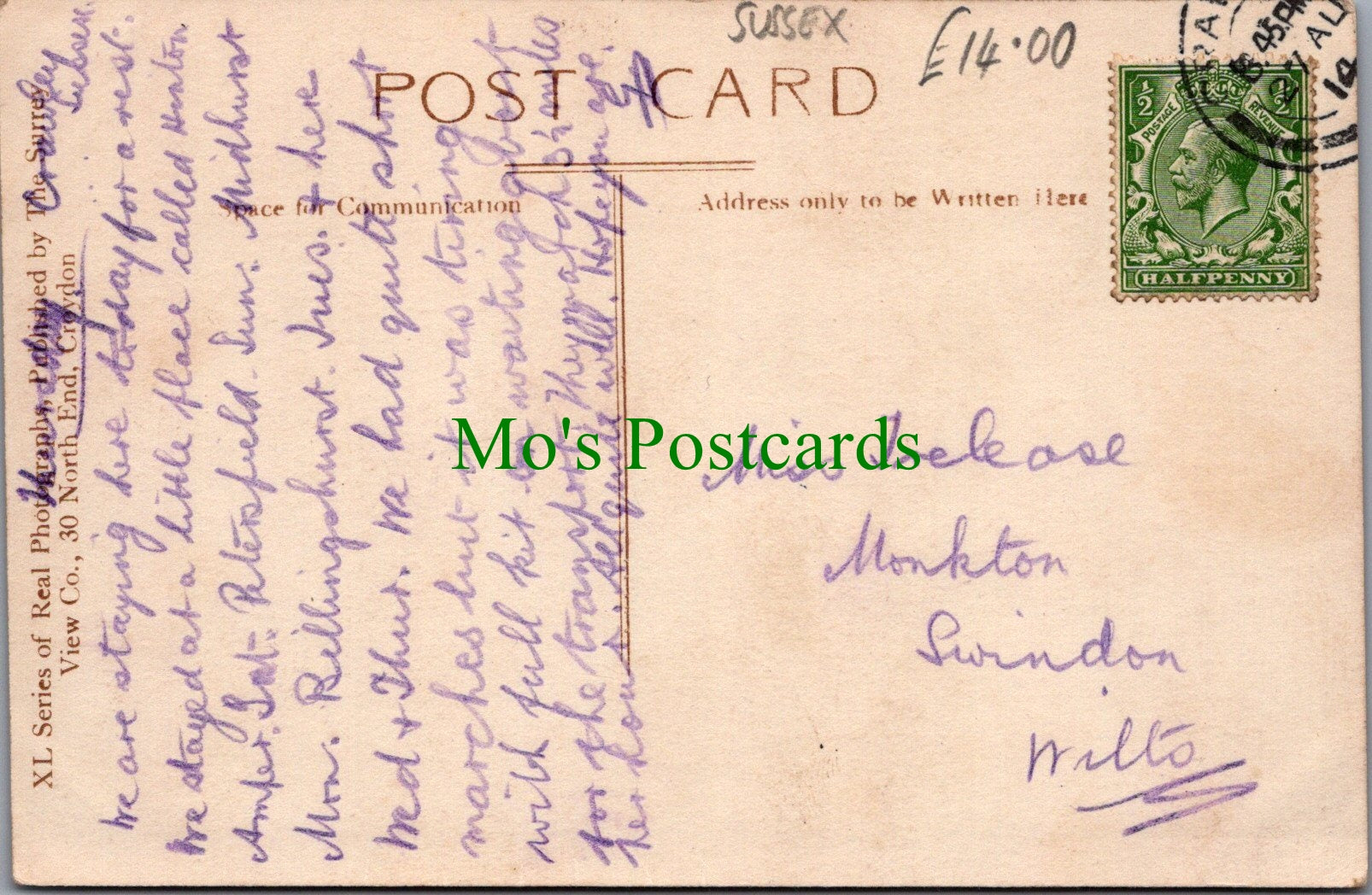 All of our beautiful postcards are posted to you inside a plastic sleeve and a board backed envelope which will be marked 'Please do not bend'. The 'Mo's Postcards' watermark does not appear on the actual postcard'.