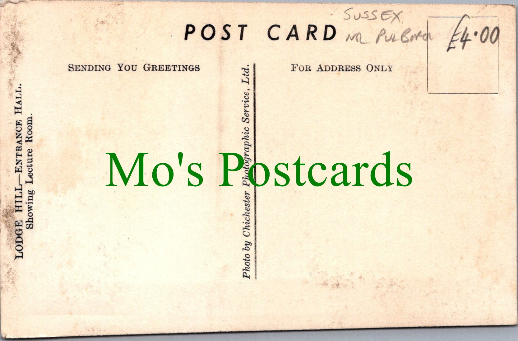 All of our beautiful postcards are posted to you inside a plastic sleeve and a board backed envelope which will be marked 'Please do not bend'. The 'Mo's Postcards' watermark does not appear on the actual postcard'.
