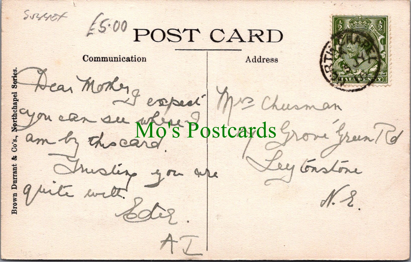 All of our beautiful postcards are posted to you inside a plastic sleeve and a board backed envelope which will be marked 'Please do not bend'. The 'Mo's Postcards' watermark does not appear on the actual postcard'.