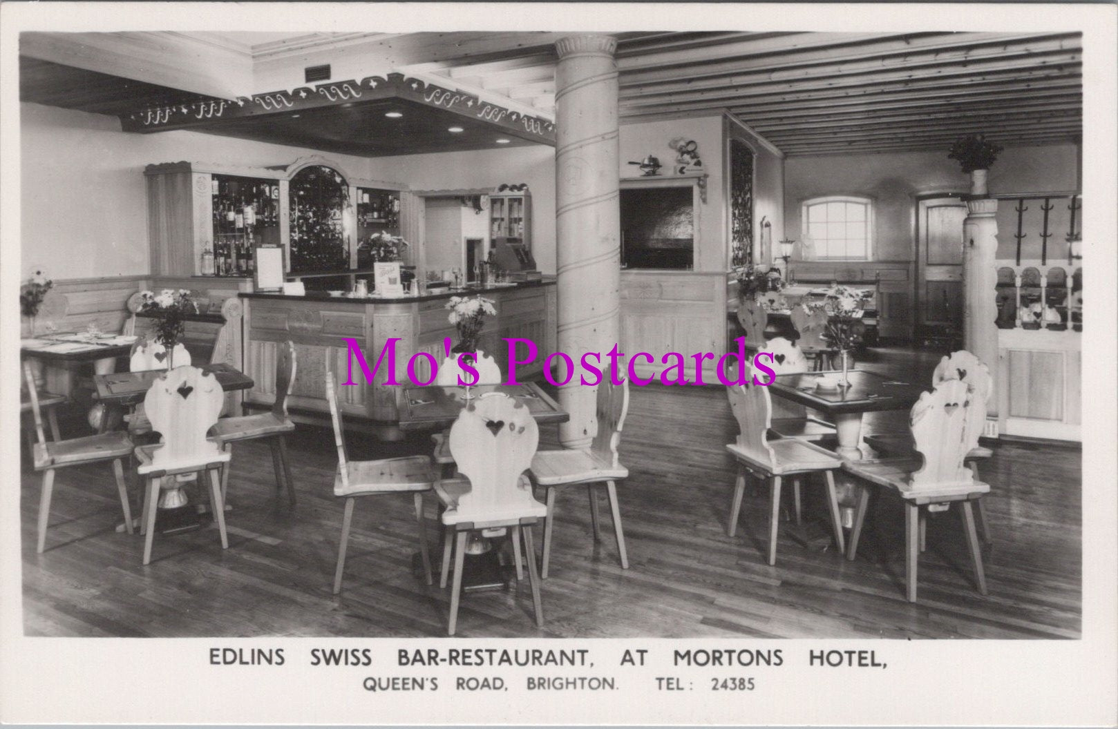 This is a Sussex Postcard - Edlins Swiss Bar-Restaurant at Mortons Hotel, Queen's Road, Brighton SW15592