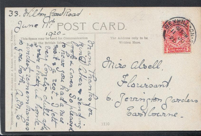 Sussex Postcard - The Parish Church, Bexhill - Artist A.R.Quinton, 1920 - Mo’s Postcards