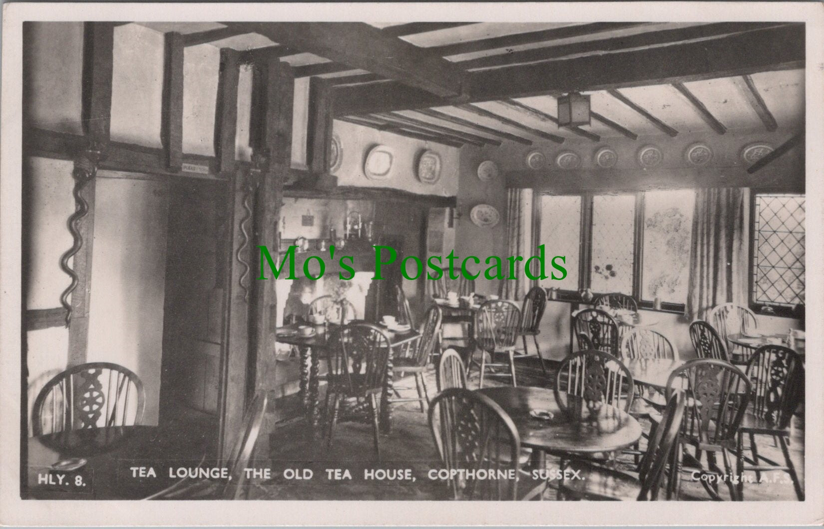 This is a postcard of The Tea Lounge, The Old Tea House, Copthorne, Sussex