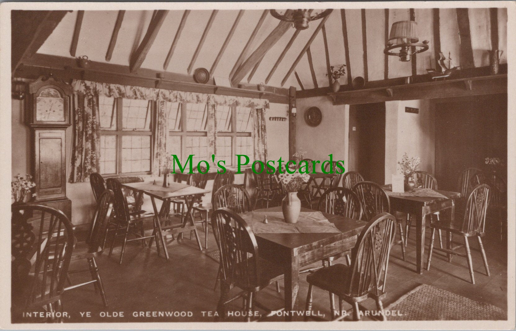 Interior of Ye Olde Greenwood Tea House, Fontwell, Sussex. This is a fantastic standard sized postcard which would be a great addition to your postcard collection.
