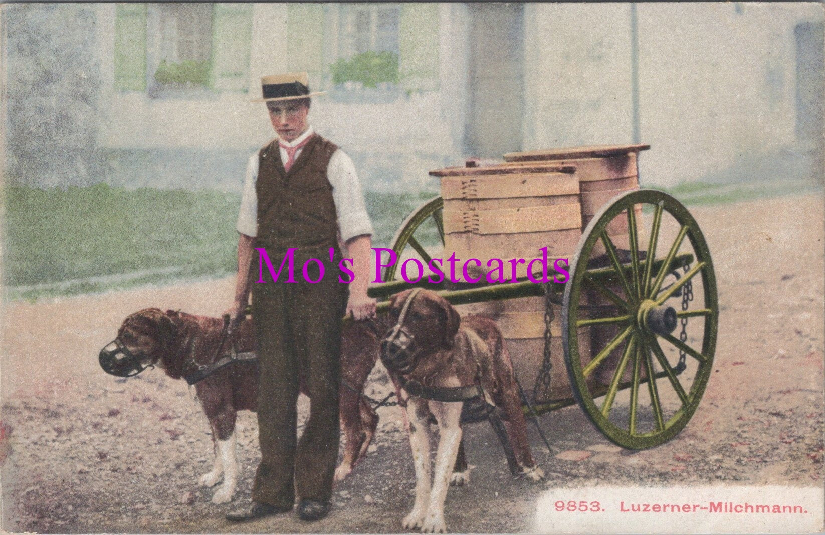 This is an Animals Postcard - Dog Cart, Swiss Milkman, Luzerner-Milchmann  DZ333