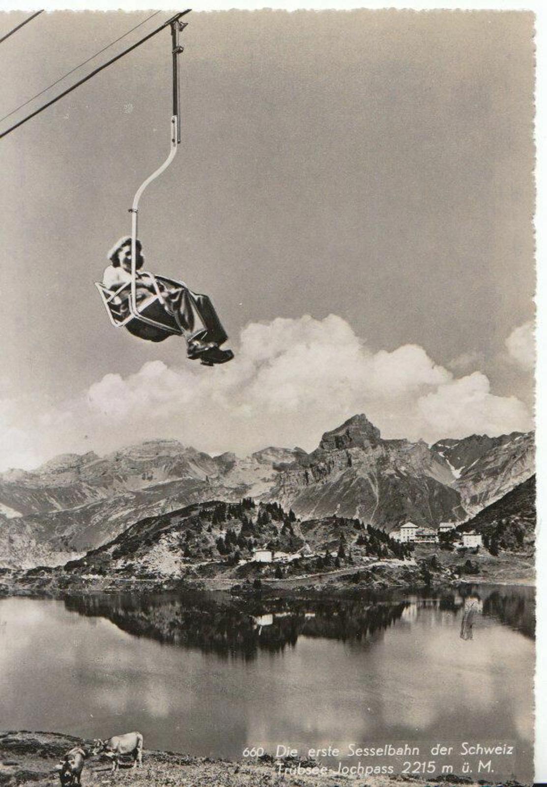 Postcard Description: Switzerland Postcard - Die Erste Sesselbahn Der Schweiz Trubsee-Jochpass