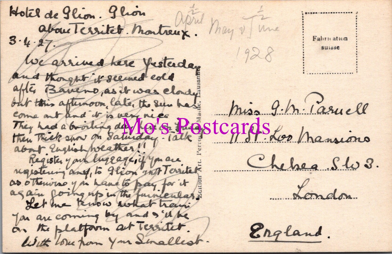 The 'Mo's Postcards' watermark does not appear on the actual postcard'.