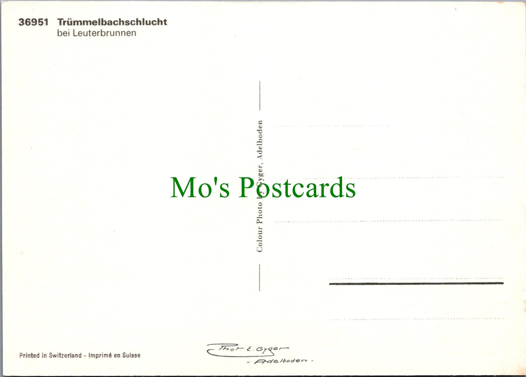 Trummelbachschlucht, Switzerland. This is a fantastic continental sized postcard which would be a great addition to your postcard collection.