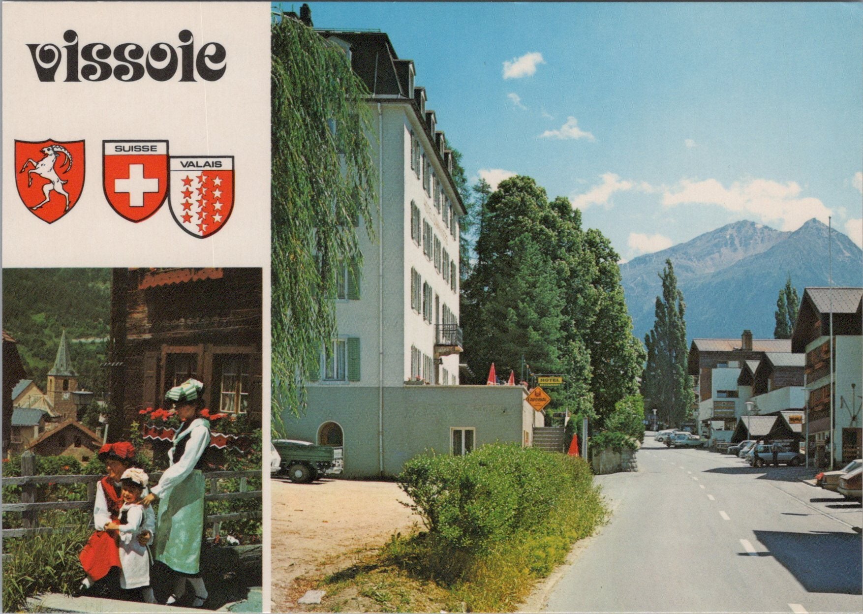 Views of Vissoie, Switzerland. This is a fantastic continental sized postcard which would be a great addition to your postcard collection.