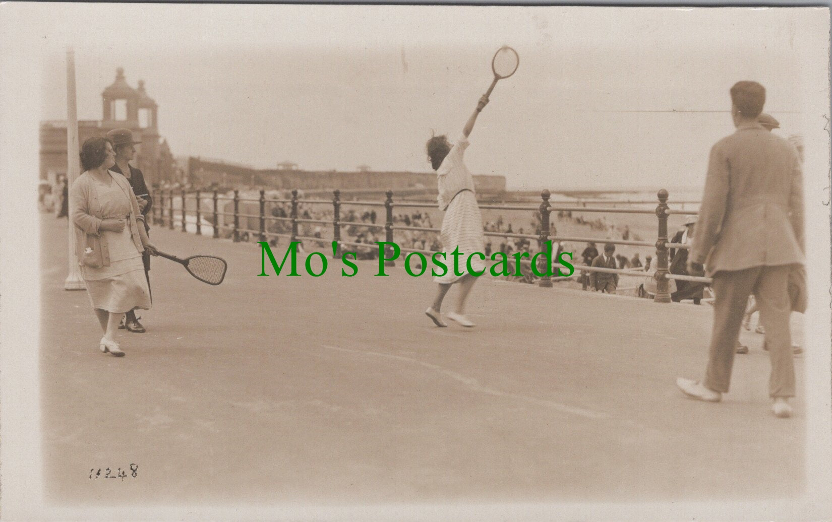 Mo's Ref:  Ancestors Postcard - People Playing Tennis at The Seaside SW12550