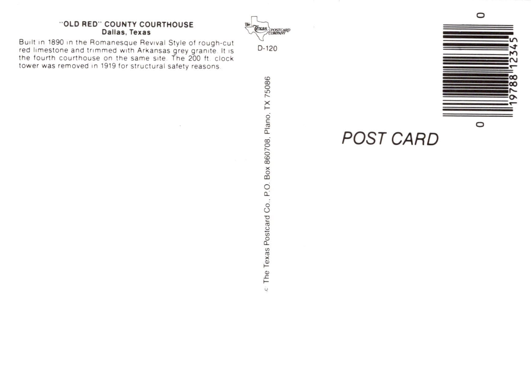 America Postcard - "Old Red" County Courthouse, Dallas, Texas SW43
