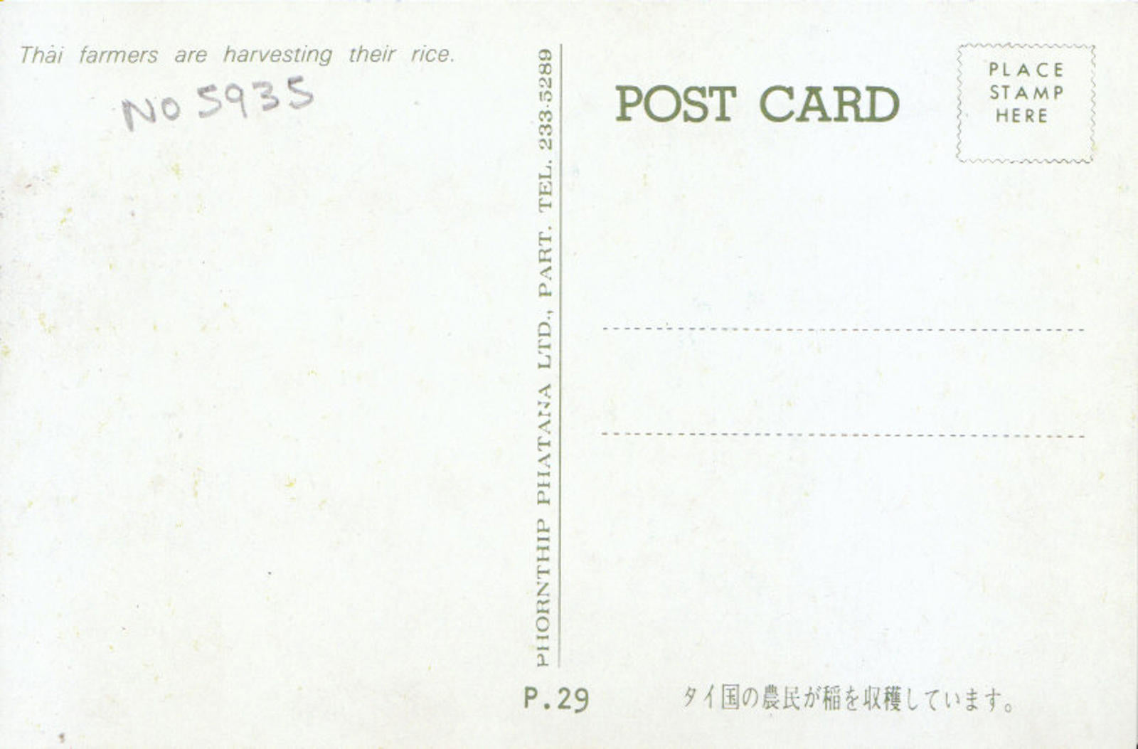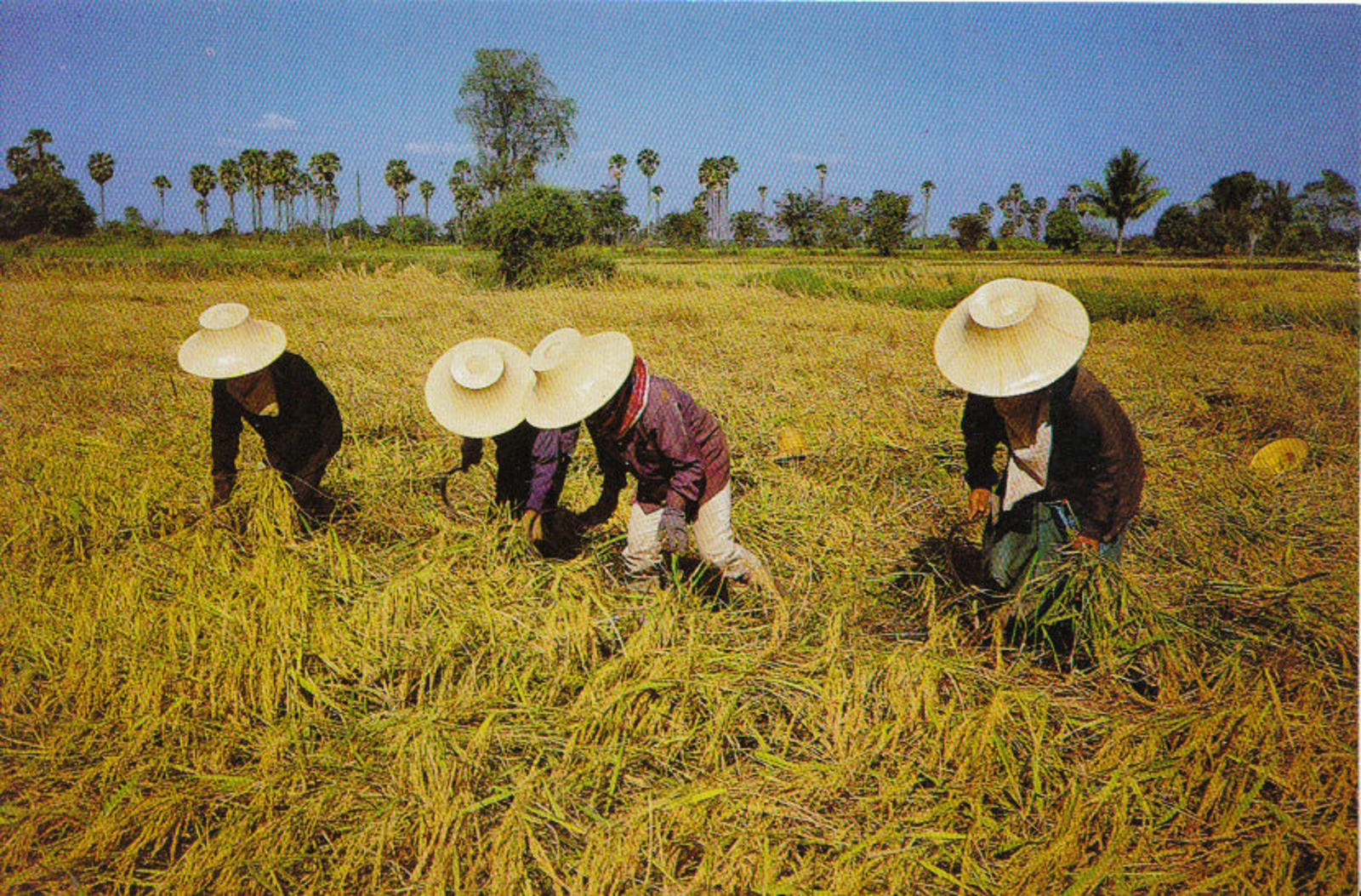 Postcard Description: Thailand Postcard - Thai Farmers Are Harvesting Their Rice