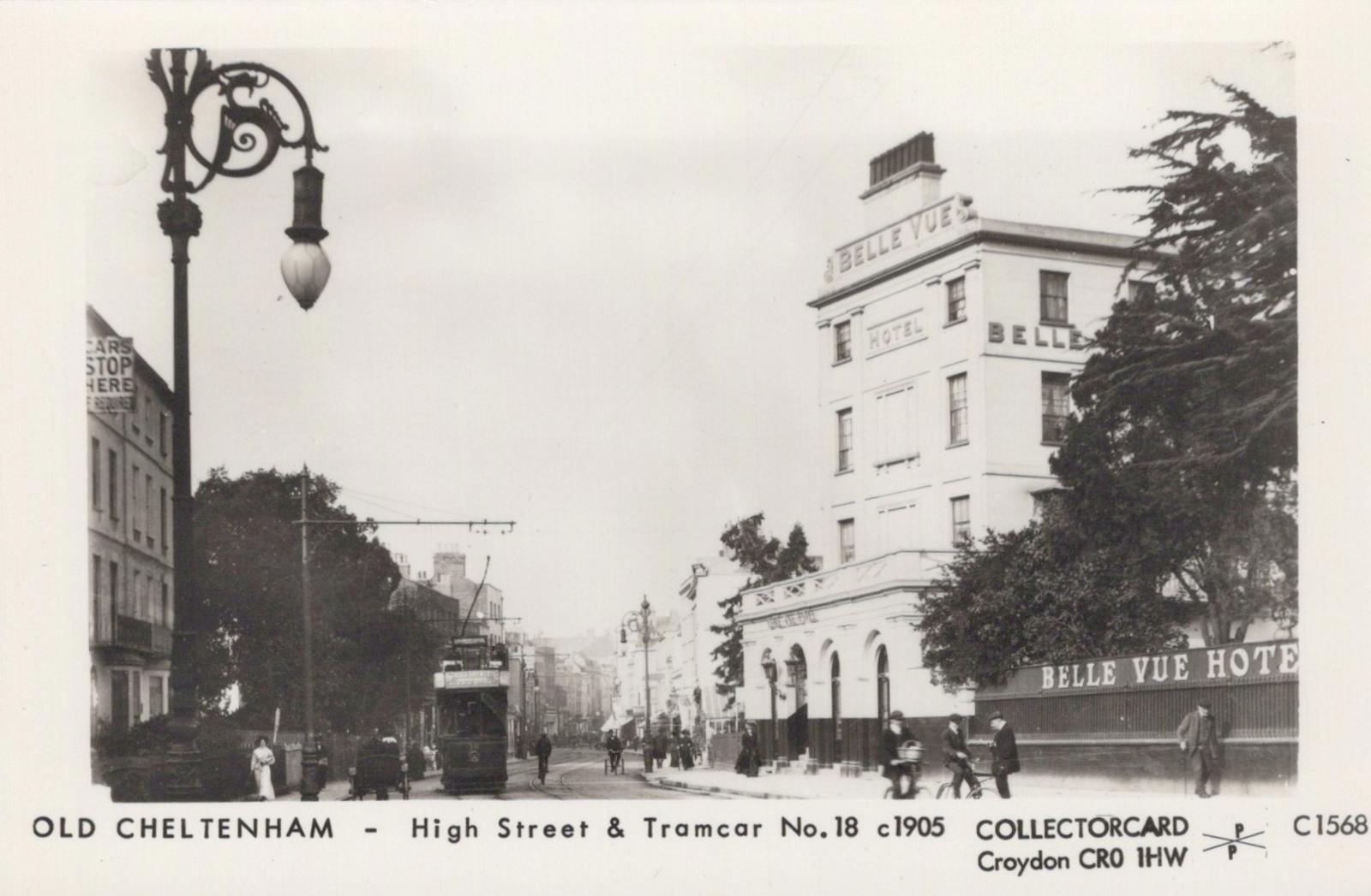 This is a Gloucestershire Postcard - Old Cheltenham High Street & Tramcar c1905 - XT34