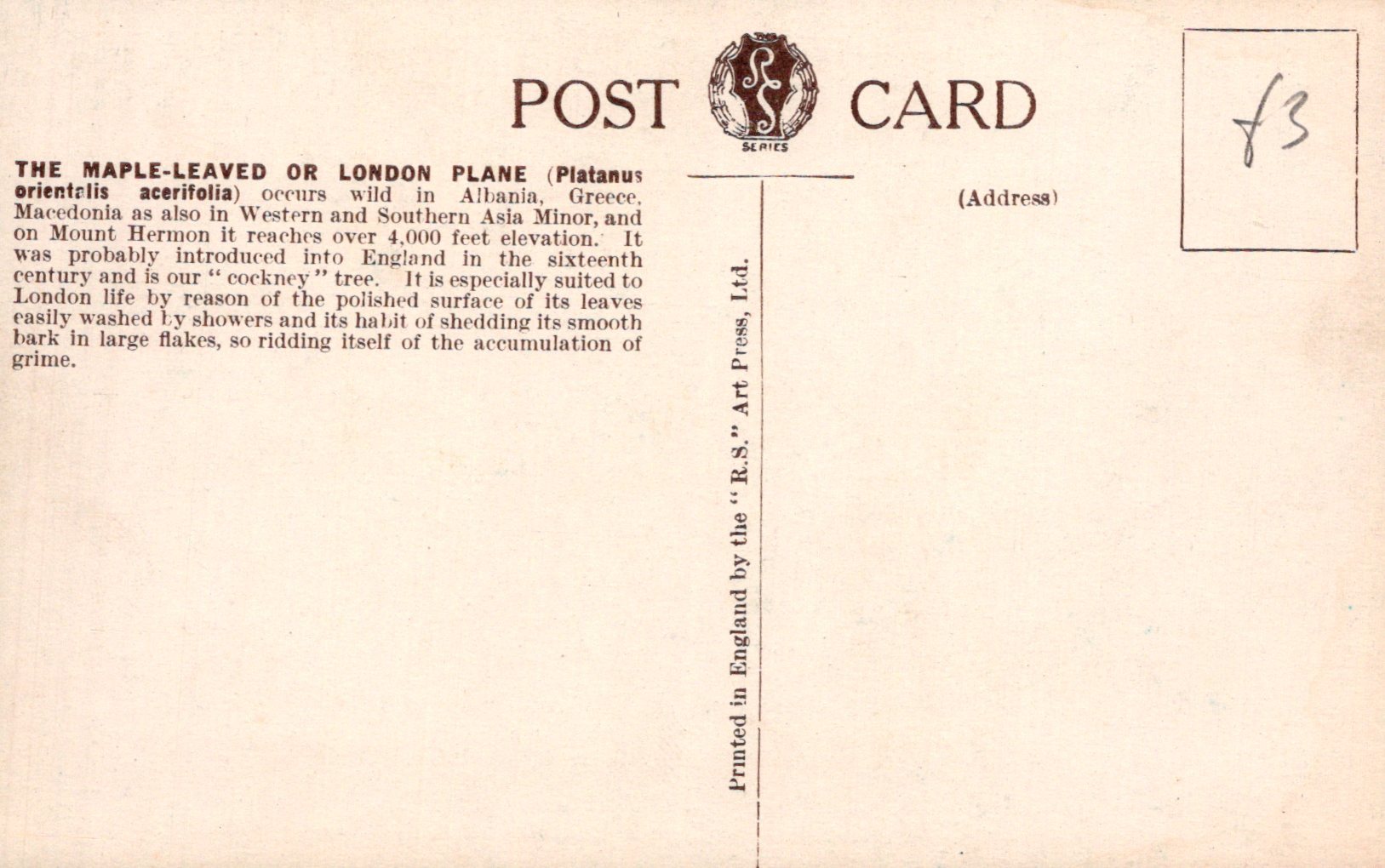 This is a Nature Postcard - Trees, The Maple Leaved or London Plane Tree VT436