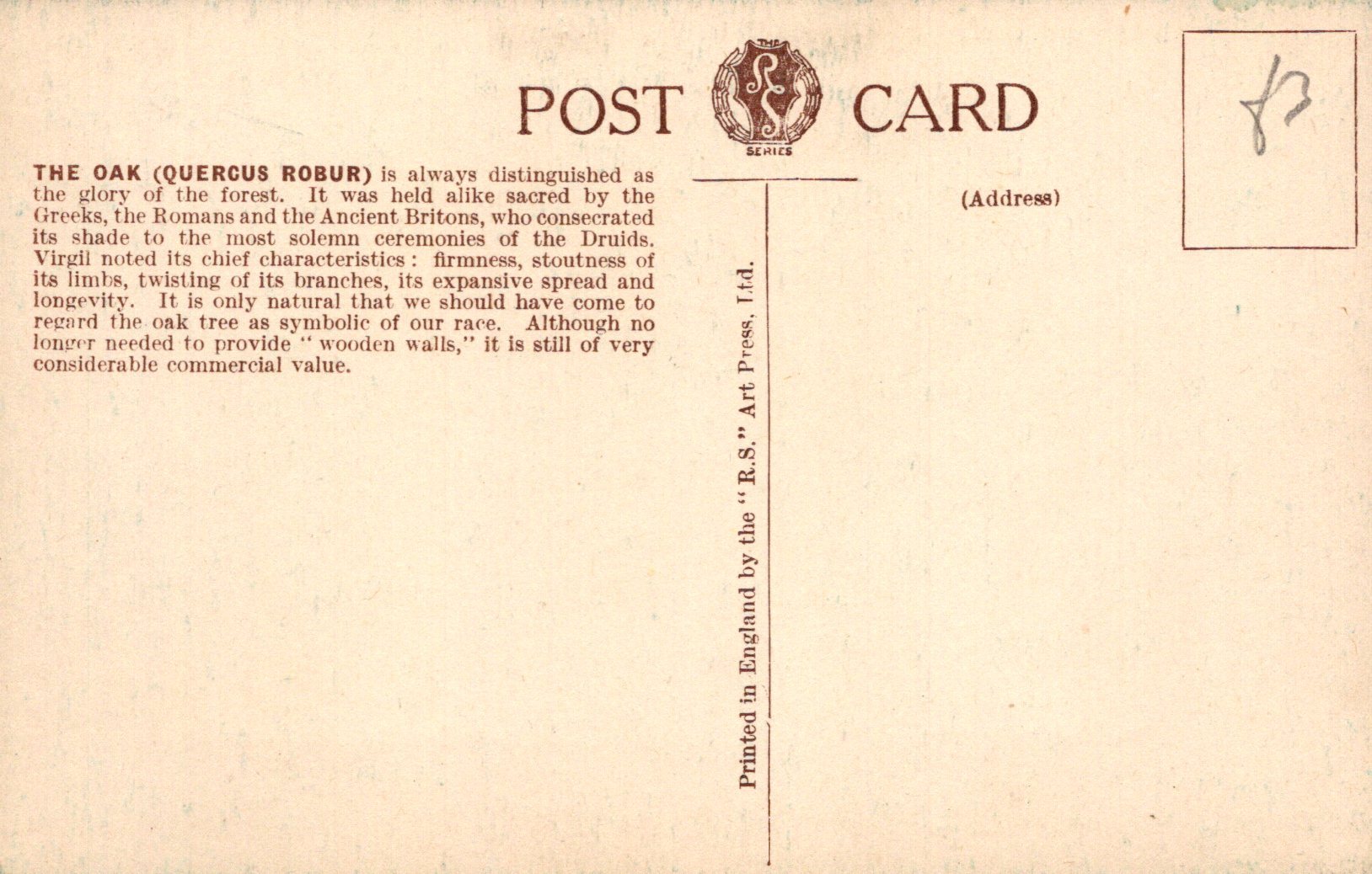 Mo's Ref: Nature Postcard - Trees, The Oak Tree, Quercus Robur VT424
